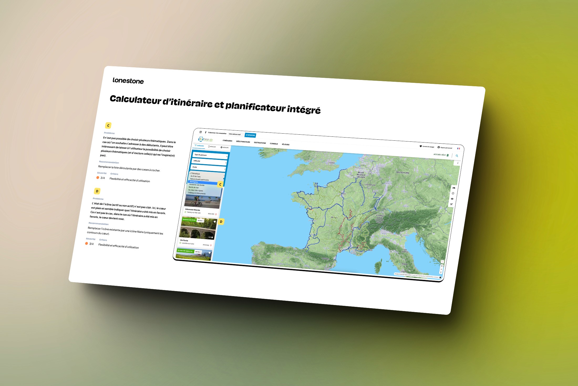Un peu moins d’un an après, l’équipe de France Vélo Tourisme a refait appelle à Lonestone pour l’étape d’après : la phase de conception de la solution.